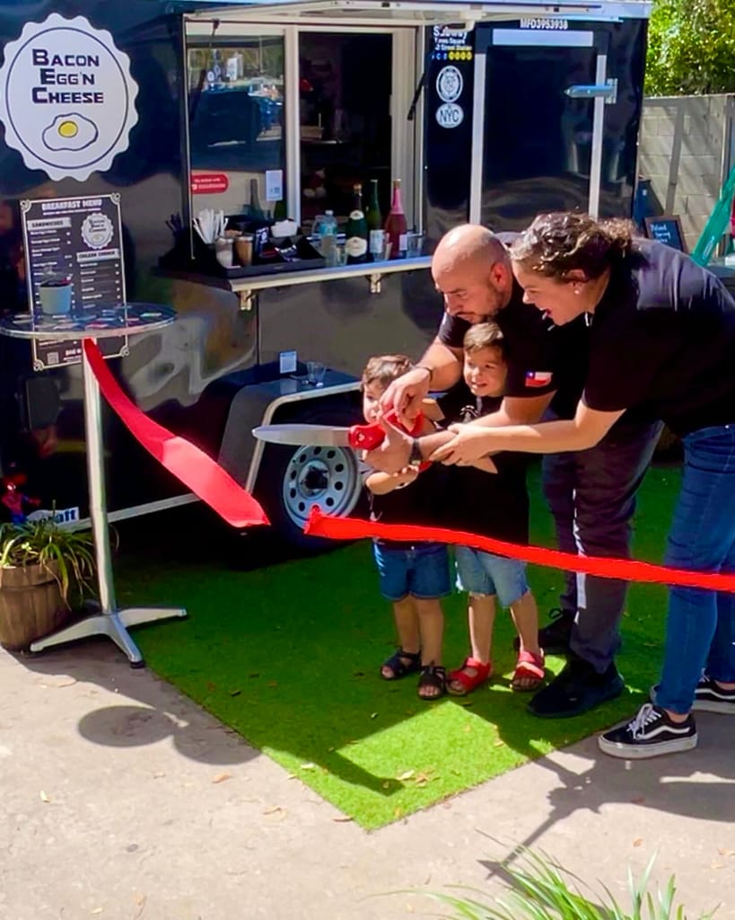 He called the truck Bacon Egg’N Cheese. Here’s a family photo from the ribbon-cutting: