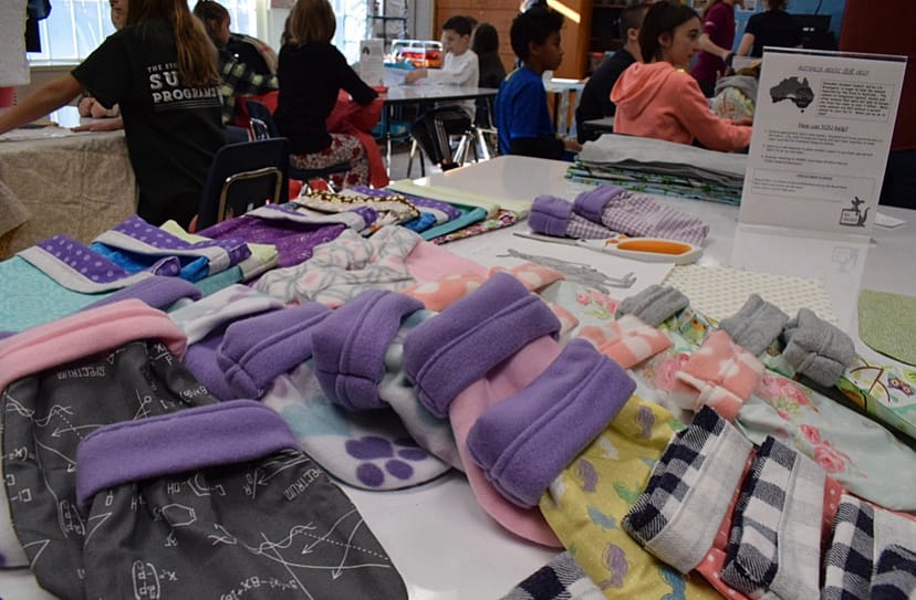 A member of the Setauket Elementary School student council, Lily recently asked her peers to help. Since Monday, 40 members of the student council have made over 100 “Joey Pouches” all headed for Australia.