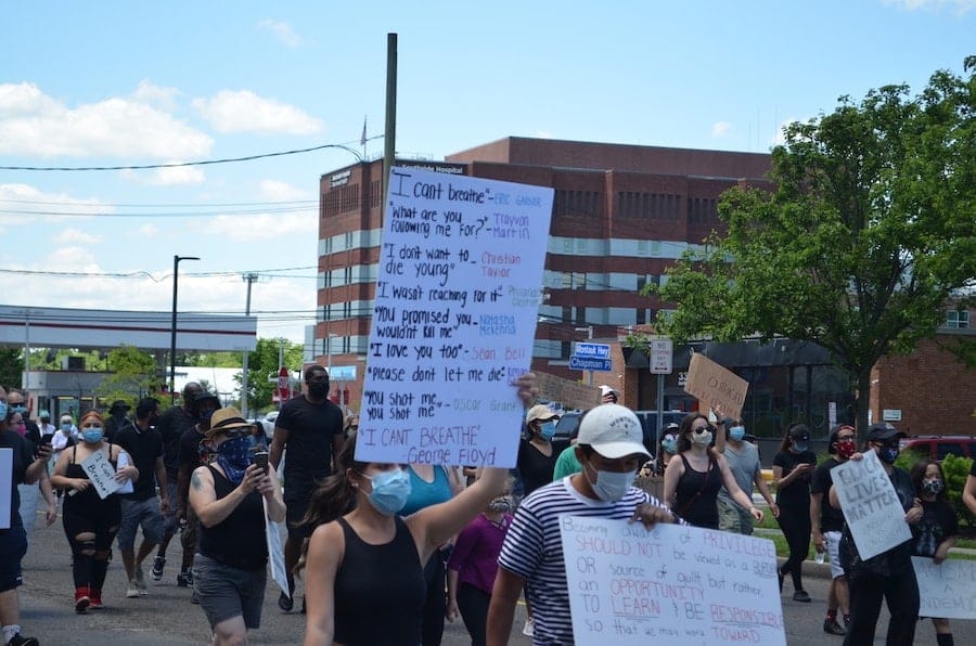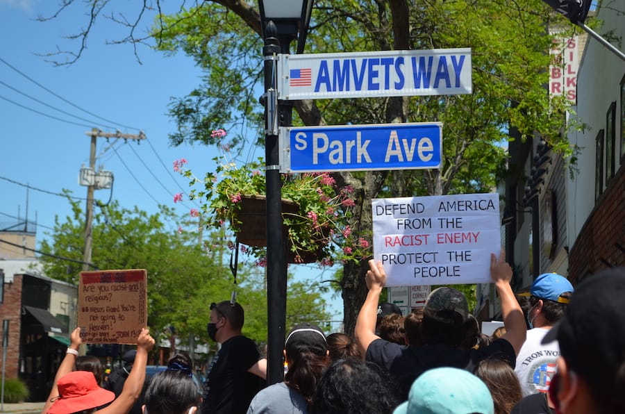 These names, among others of innocent black lives taken at the hands of police in the U.S., rang throughout Main Street as thousands of peaceful protestors marched through Bay Shore on Sunday afternoon.