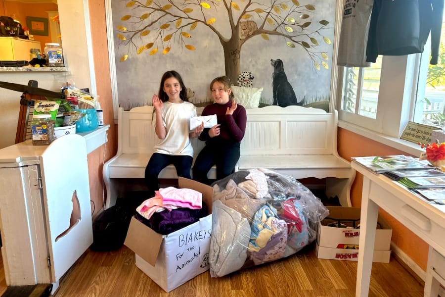 Elise Ciardullo of Port Jefferson and Amelia Theodorakis of Stony Brook donated $1,000, plus a heap of blankets, to Save-A-Pet USA Friday. To reach their $1,000 goal, the duo worked various lemonade and homemade goods stands since last spring, all of which boasted the same slogan: ‘Buy a cup, save a pup.’