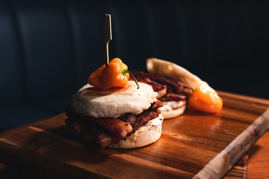 - Fear the Schmear: An explosion of flavor, this sandwich contains seared braised pork belly, fiery roasted habanero cream cheese, tomato and clover honey drizzle, all on an oversized English muffin. Available at Market 103.