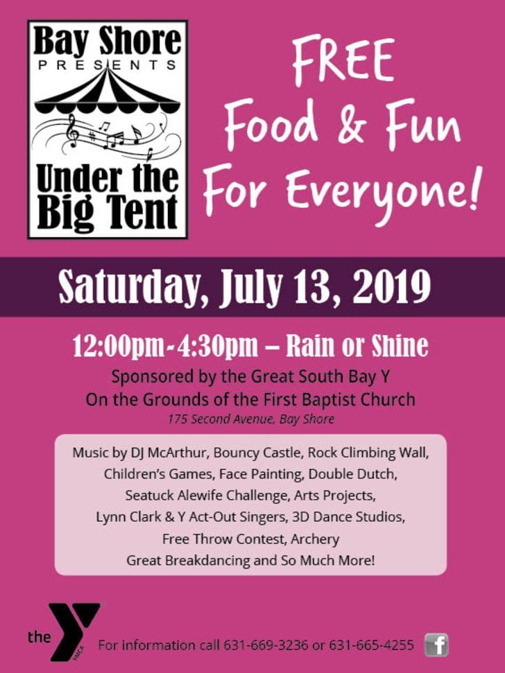 Get set for another summertime installment of “Under the Big Tent” in Bay Shore.