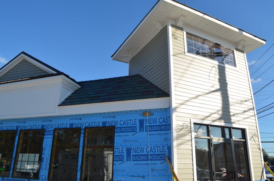 The Brightwaters Commons, located at 344 and 348 North Windsor Ave., underwent a complete makeover, and after over a year of construction, the strip of stores now includes a tower and vestibule with a weathervane, as well as a new siding, roofing, and pillars.