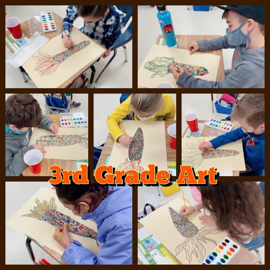 Third-graders at Blue Point Elementary had a ball creating their flint corn paintings, using tons of color.