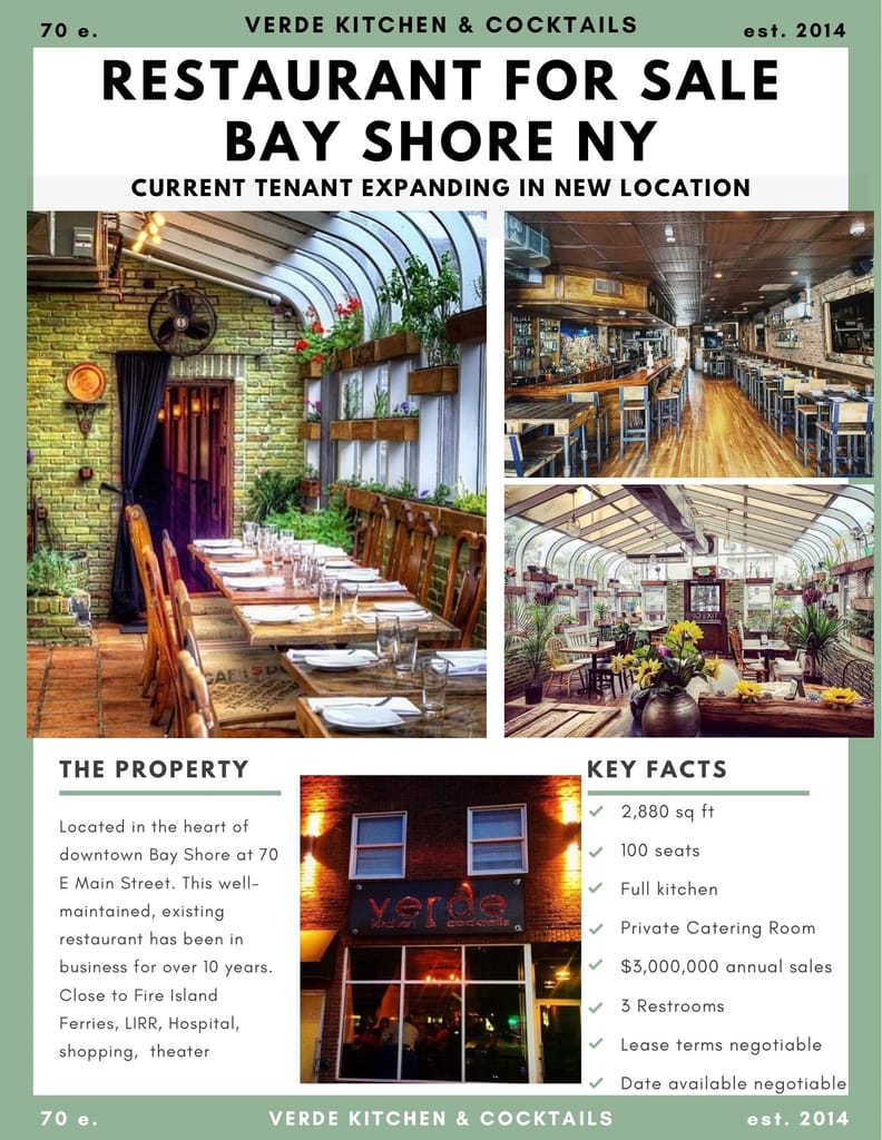 “A new restaurant could be open in a couple of months.” Scroll down for the Verde “for sale’ literature.