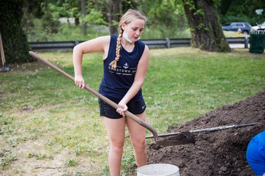 Alongside groups like Hometown Hope and Port Jeff Rotary Club, residents assembled garden boxes, put in posts, dug trenches, and moved soil among other various tasks.