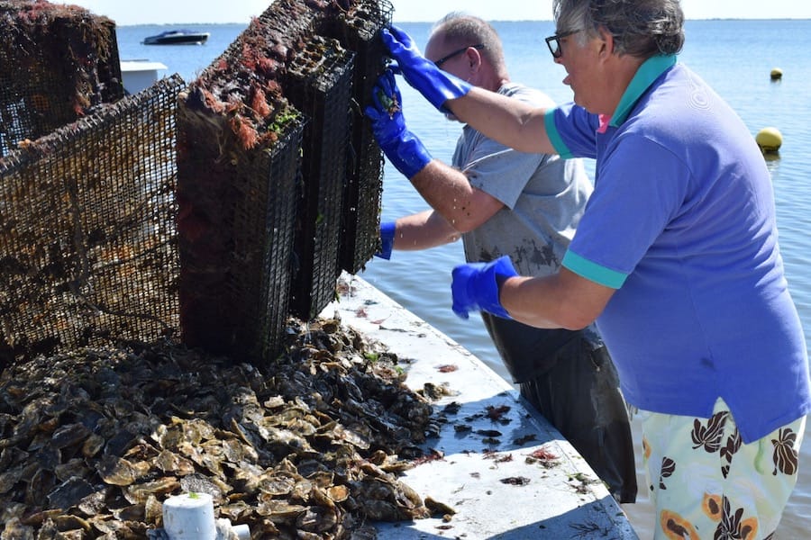 The oyster planting in the bay is a constant job— when the baby oysters were planted in June, they were constantly monitored, sized and weighed. When they were moved to their sanctuary this week, the monitoring will continue with constant check-ups to make sure they are growing and surviving on their own.