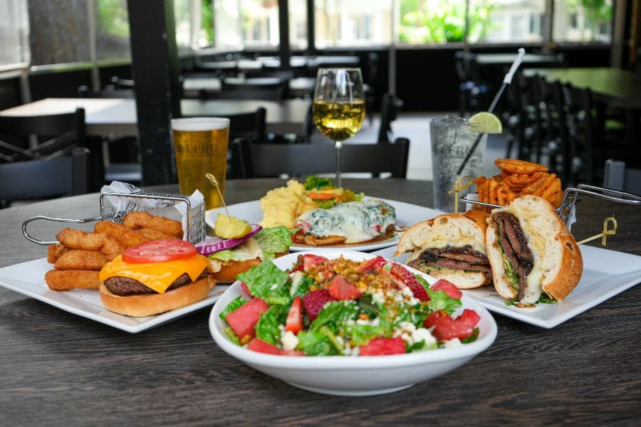 Available all week long, J&R’s includes a whopping 16 choices on the lunch menu. Some hearty options include: pot roast with mashed potatoes, roasted half chicken with rice, turkey club with fries, or corned beef rueben.