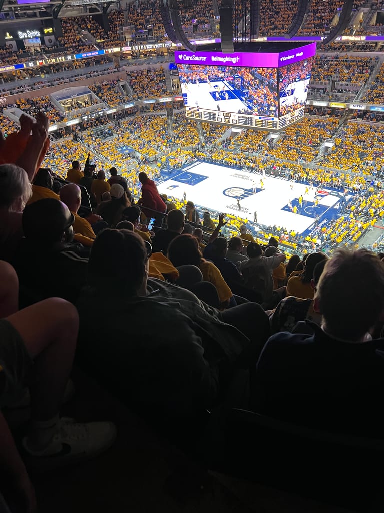 Then we walked about a half-mile to Gainbridge Fieldhouse, the home of the Pacers. But first, a drink, or two. Actually, f— it. Two shots each. We found this bar right outside the stadium. We both slugged vodka (by the way, filled way more than a normal shot) for $6 each at a place called The Pub. Insanity. That’s easily $12-16 each in NYC.