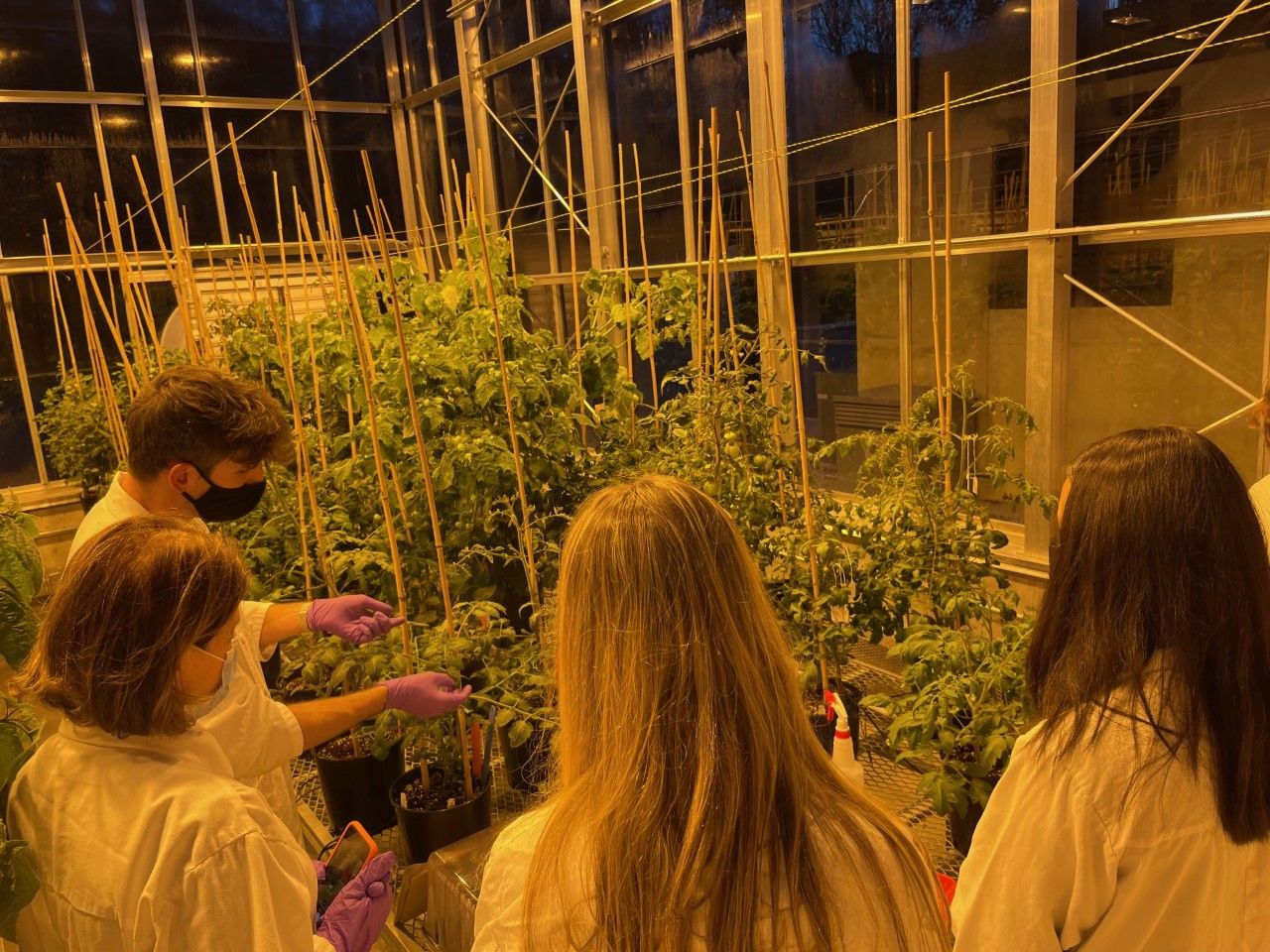 High schoolers Anna Duff, Ava Green, Abby McGullam, Jack Steel, Liam Storm and Lindsay Sung recently visited their greenhouses in Woodbury, conducting cutting-edge research on gene modification of tomato plants.